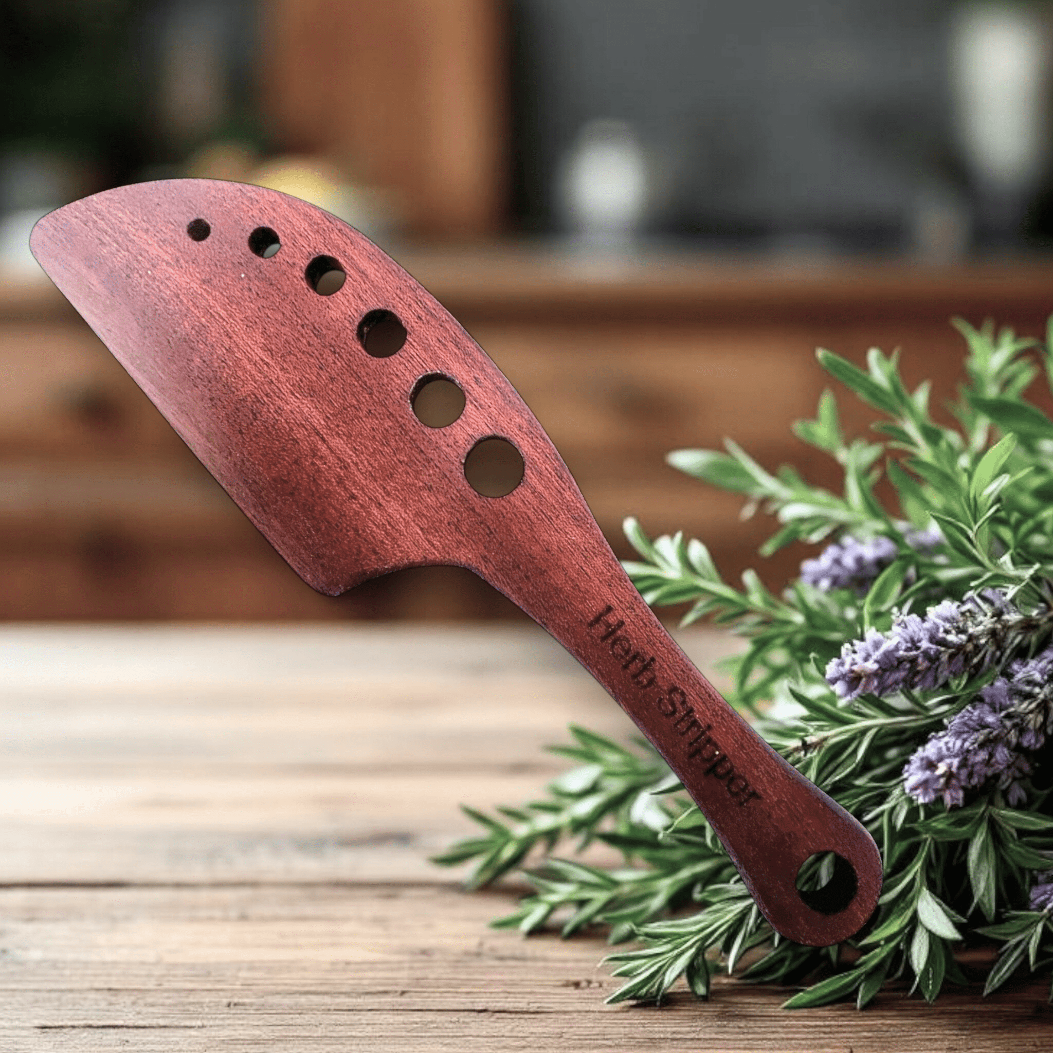 Handmade herb strippers with 6 precisely cut stripping holes that gradually reduce in diameter to accommodate a variety of herbs. Each sold separately. Color will vary due to nature of wood.
