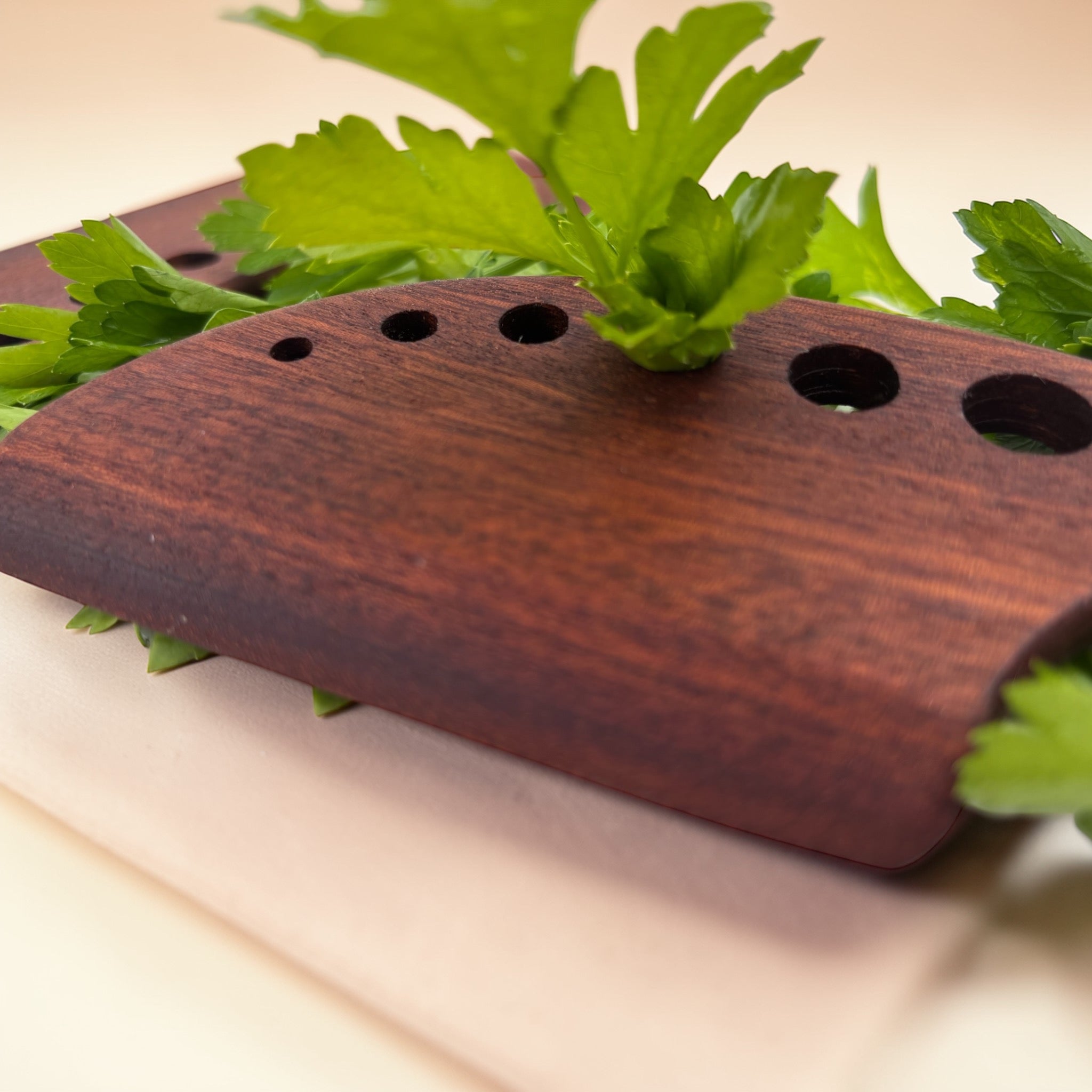 Each herb stripper is finished with wood balm which is a compilation of beeswax and organic grapeseed oil, which not only nourishes the wood but also brings out its natural luster.